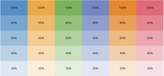 To add range to the color palette, tints of the colors may be used where appropriate.