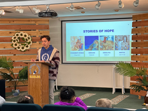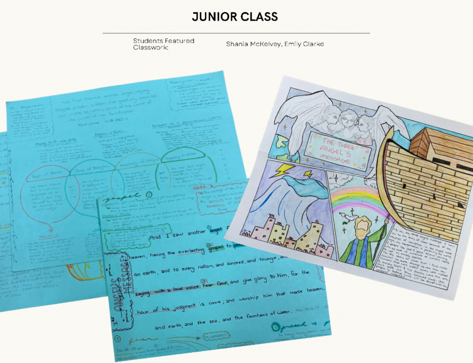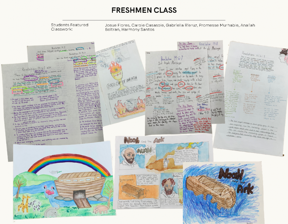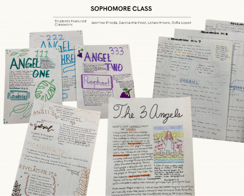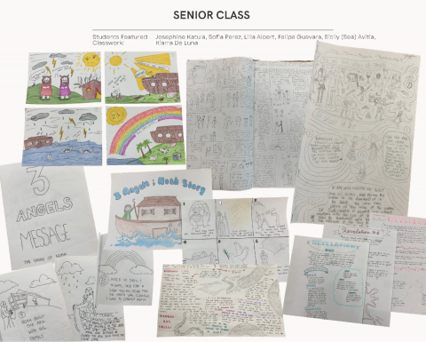 Since the start of the new year, San Diego Academy (SDA) has been focusing on a core teaching of the Adventist Church: the three angels’ messages. Oftentimes these messages have been confusing and hard for young people to understand. So, Pastor Guevara-Jackson, SDA Bible teacher, sought to break down these messages into bite-size, understandable pieces. They drew parallels between the three angels’ messages and the story of Noah for further clarification and to see the relevancy for our current times. After each class’s time in study, the students were tasked with creating projects to demonstrate their understanding of these messages and their connection to life today. Students were given three options to share their takeaways: a written review, detailed verse mapping, or a graphic project with a written component. As their campus pastor and religion teacher, Pastor Guevara-Jackson was extremely proud of their work.