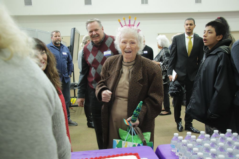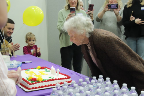 On February 25, Lorraine Burros celebrated her 100th birthday surrounded by family and friends at the Santa Clarita church. Multiple generations were present for the occasion—including Lorraine’s grandchildren and great-grandchildren—coming from near and far.