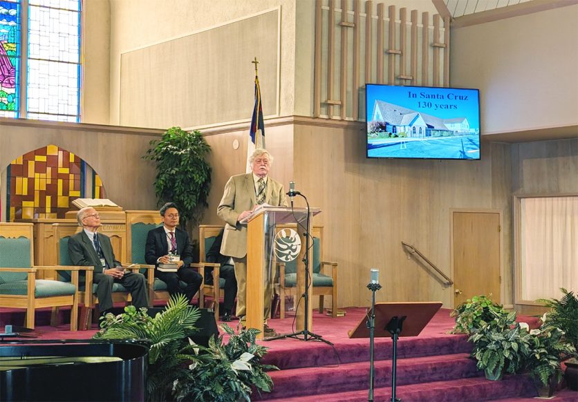 The Santa Cruz Church was founded on March 31, 1894, making this year a milestone. Celebrating its 130th anniversary, three of the former pastors attended this event and helped with the service. Doug Motsenbocker, Joe Reynolds, and Thom Garner all helped by offering prayer, acting as elder, and presenting a history of the church. Pastor Jireh Yi, current pastor, spoke for the event highlighting the sanctuary and God’s message through it—the symbolism of the sanctuary and how it is applied to us today.