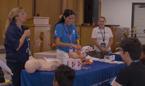 The morning worship service featured LLU students and a message from Dexter Frederick, M.D., LLU School of Medicine associate dean for diversity, equity, and inclusion. A lunch and learn with a health career panel discussion followed the morning service. Panelists featured health professionals in different stages of their careers who took the opportunity to share about their experience in their fields and answer any questions asked by attendees. After the panel discussion, the health fair portion of the event began, providing services such as dental exams, vaccines, and other screenings available from AHG’s mobile health unit. The L.A. County Public Health department also brought in a team of trainers who gave Hands-Only CPR, Narcan (reversing opioid overdose), and Stop the Bleed (bleed control) trainings.