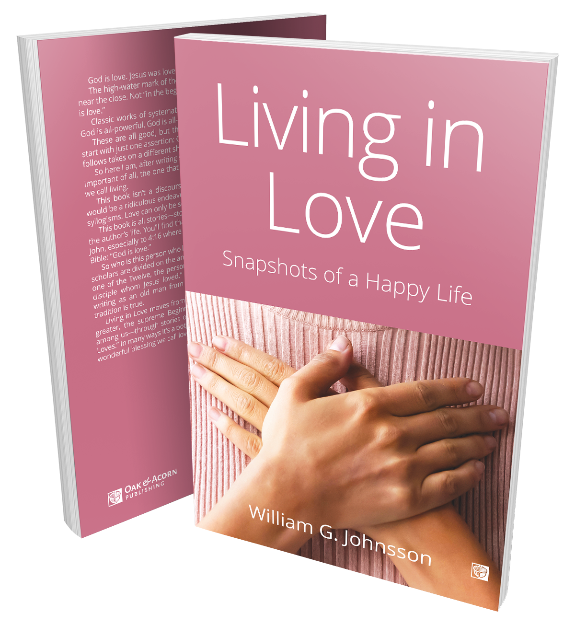 This book is all stories—stories about love. Most of the stories come out of Johnsson’s own life. "Living in Love" moves from beginnings—his beginning as a writer and the greater, the supreme Beginning when Love became incarnate and lived among us—through stories of love in his life to a concluding section, “Four Loves.” In many ways it’s a potpourri of the mystery and marvel of this elusive, wonderful blessing we call love.