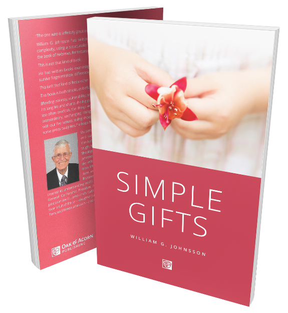 William G. Johnsson has written books on subjects of great theological complexity. This is not that kind of book. This book is both simple, as befits it title, and profound. Blending honesty, vulnerability, and spirituality, Johnsson looks back on his long life and shares the big picture. It’s the simple things—the things we too often overlook, the things we get too busy to see—that are important, extraordinary, unchanging. Using words to paint insights, reconnecting us with our five senses, and cracking himself up with some pretty bad jokes, he helps us to once again see the beauty of simple gifts.
