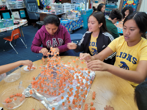 These goals, along with some unforeseen positive outcomes, were met when the older students treated five unsuspecting TK/K students to an activity that involved creating a stand-alone building made up entirely of candy and toothpicks. The idea for this collaboration came from WCHAS TK/K teacher. Every student jumped into this activity enthusiastically, and the little ones made friendships and got a big brother or a big sister in the deal!