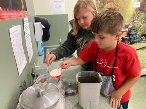 The third- and fourth-grade students at CAES have started their own business: The Third & Fourth Grade Bread Company. Every day, everyone can to smell the fantastic aroma wafting from their classroom as students make a loaf of Honey Wheat Bread by using the bread machine that is in their classroom. Students measure all the ingredients, making sure to follow each step of the recipe. It’s then packaged for delivery to the lucky family who was able to sign up to receive this much anticipated treat!