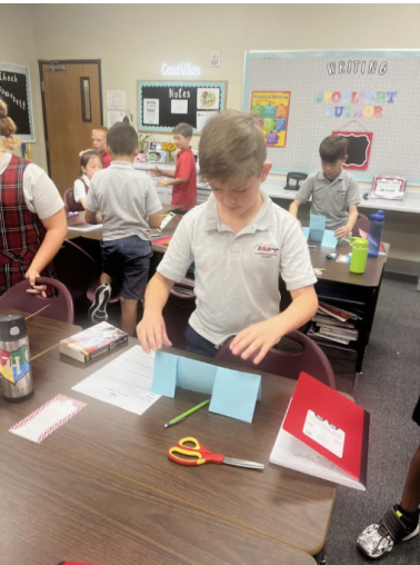 The students in grades 4 and 5 took part in a mindset activity during the first week of school that encouraged them to realize that struggling is totally normal, especially in new situations. Trying makes all the difference! Sometimes, it takes working with classmates to achieve a task. The students used cut paper to discover that, when they worked together, they were able to get the pieces of paper to stand—which they could not do if they tried to do it alone.