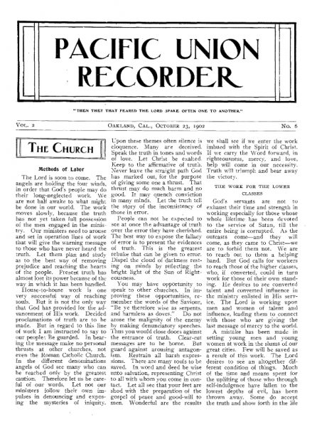 1 Alonzo T. Jones, “The California Camp-Meeting,” Pacific Union Recorder, Oct. 23, 1902, p. 4.