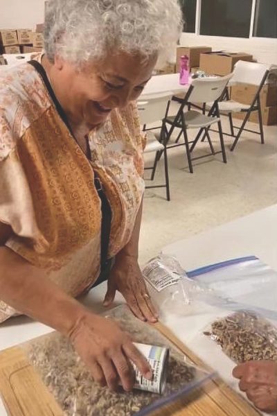 Los miembros se reunieron e hicieron 18 pasteles de piña, junto con tarjetas de Acción de Gracias hechas a mano, y las distribuyeron a los vecinos de la iglesia. La tropa de Conquistadores ayudó a distribuir los pasteles, después de su encuesta, a la mañana siguiente. Fue una experiencia maravillosa para todos. La noche de horneado no solo le dio a la familia de iglesia la oportunidad de conectarse entre sí, sino que también les permitió conectarse con su comunidad.