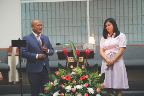 SCC President Velino A. Salazar presented a challenge to the church inspired by the great commission found in Matthew 28:19-20. “Jesus gave us the commission,” he said, encouraging the members that “people need to hear about Jesus. You are disciples. The passage concludes by saying ‘I will be with you.’ Only at certain times? No—until the end of the world!”