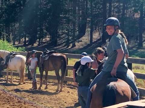 At camp, Darci Miller, a “cowgirl” from Sonora and first-time camper, was thrilled with living in the temporary canvas bivouac, harkening back to visions of the Wild West. She said, “I know we couldn’t make the long trail rides due to the burnt trees and blocked trails, but being part of the camper rodeo was the best part of the week!