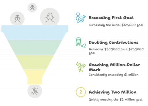 Their first major focus was the evangelism offering. With giving far below past levels, they prayed for a breakthrough. That year, the total unexpectedly jumped to more than $130,000. Encouraged, the team raised the following year’s goal to $250,000—and once again, prayer led to provision, with the final tally surpassing $300,000. As prayer continued, so did God’s blessings. The conference later received more than $1 million in back-to-back years, and even the quietly held goal of $2 million was eventually met and exceeded.