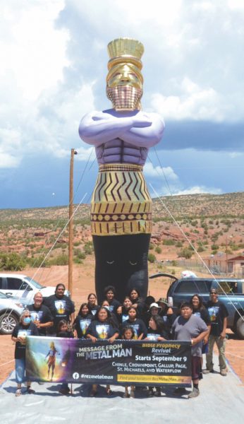 Before the meetings took place, a “Walk Across the Navajo Nation” to promote the prophecy revival began in Chinle on July 24 and ended 240 miles later at Waterflow on Sept. 9. It featured a 10-foot banner carried by walkers, who gave out fliers as they traversed the nation. In addition, a 30-foot-tall inflatable Daniel 2 statue was set up at strategic locations along the route to gain additional attention.