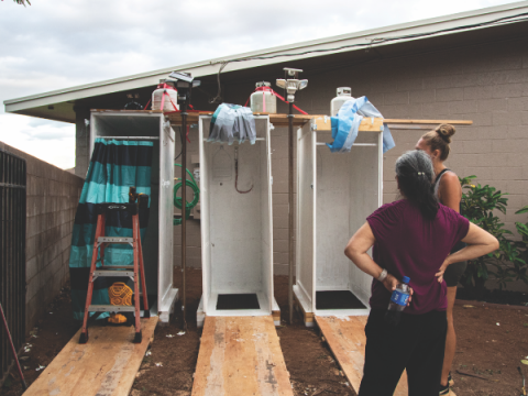 During this time of rebuilding for the community, many conference leaders and local church members stepped up to help wherever there was a need. Coordinating the relief efforts was Erik VanDenburgh, conference president, with help from Mark Tameleaa, ACS Hawaii director, and the pastor of Kahului church, Vassili Khrapov. Those in need of counseling were able to find friendly faces in the form of Pastor Ben Williams and Pastor Ramel Ramos, who offered spiritual and emotional care to those in need. A local couple, Krista and Ryan Nelson, stepped up and helped the community by building mobile showers to provide the opportunity to get clean.