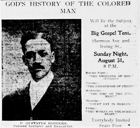Born in Philadelphia, Pennsylvania, on August 10, 1885, Gustavus Rodgers was the sole convert resulting from evangelistic meetings conducted by Fred H. Seeney in Wilmington, Delaware, in 1908. Gustavus and Alverta, married in 1906, both had roots in the Delaware-based people of ambiguous racial heritage known as “the Moors.”2 The couple’s light complexions sometimes confused people. When, for example, they arrived in Los Angeles in 1923, their congregants reacted with surprise, thinking that the conference had sent a white man to be their minister.3 Yet there was nothing ambiguous about their identity as Black or about their dedication to racial advancement.