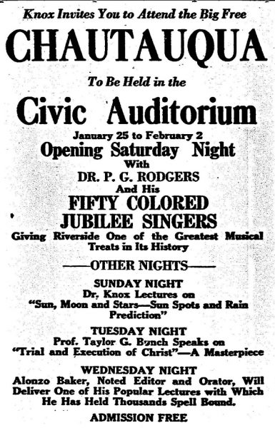 Rodgers’ ministry was not restricted to the Black community. He served on the Southern California Conference Executive Committee from 1927-1937 and was frequently a featured speaker at camp meetings and other conference-wide gatherings. He also lent his preaching and the music of his renowned choir, for which he selected the name Jubilee Singers, in support of the efforts of leading White evangelists, such as H.M.S. Richards Sr. and Philip Knox.
