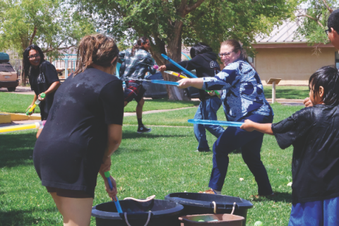 Dios diseñó a propósito a los niños para que aprendieran a través de la actividad. Los estudiantes y los miembros del personal se reían, jugaban y camaradeaban mientras se marcaban unos a otros con cañones de agua, se arrojaban unos a otros a una de las tres piscinas inflables en los espacios comunes o empapaban a un compañero de equipo desprevenido con un chapoteo de un balde de agua.