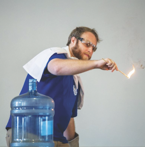 “Sometimes, people say mean things or sometimes students face struggles in their lives, which are, in essence, invisible (like the isopropyl alcohol poured into the jug that worked as the flame agent),” Mr. Martin explained. “Rumors and problems keep building up. We can act like everything is fine (the alcohol evaporates, filling the container with invisible vapors). But eventually, something small could set us off (like the match) and we ‘blow up.’”