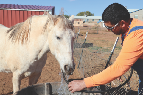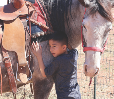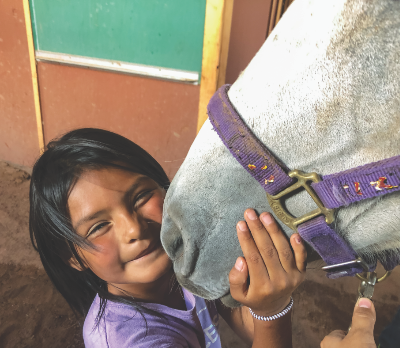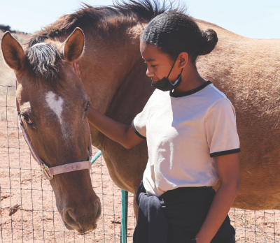 De manera similar, muchos de nuestros estudiantes en Holbrook Indian School (HIS) han estado expuestos a experiencias adversas en la infancia (ACE) que afectan su capacidad para pensar con claridad, procesar correctamente y retener la información que aprenden en el aula. A menos que tengan un espacio seguro en el que abrirse y compartir sobre el trauma que han experimentado, terminan teniendo dificultades en la escuela. Nuestro departamento de consejería es un recurso vital por esa razón. Un buen número de nuestros estudiantes responden bien a la terapia y aceptan la ayuda que se les ofrece. Sin embargo, algunos prefieren un enfoque menos convencional. Si bien no tenemos un programa oficial de psicoterapia asistida por equinos en el campus, el simple hecho de estar cerca de nuestros caballos y tener la opción de venir al establo y relacionarse con un caballo es increíblemente curativo para los estudiantes que luchan por abrirse o autorregularse.