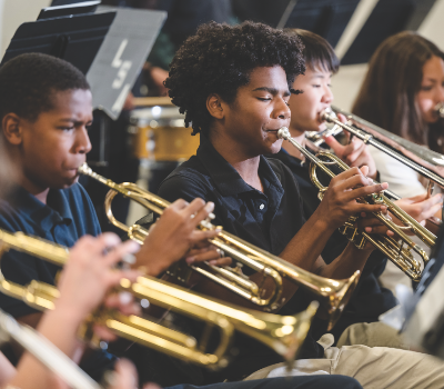 Además del servicio y la educación práctica, otro componente común de las escuelas adventistas es un sólido programa de bellas artes. Siguiendo el marco del desarrollo integral, así como la creencia de que Dios creó de manera especial a todos los individuos y dotó a cada uno con talentos especiales, las escuelas adventistas hacen de la música y las artes una alta prioridad dentro de su plan de estudios a pesar de las limitaciones presupuestarias.12 Los estudiantes que han asistido a escuelas adventistas desde el jardín de infantes hasta el duodécimo grado probablemente habrán cantado en un coro y aprendido a tocar uno o dos instrumentos musicales. Pero más allá de la música en el aula y el programa navideño requerido, esa formación musical a menudo se lleva fuera del campus y se comparte con la comunidad. Los conjuntos musicales escolares, como los coros o sinfonías para viento, a menudo se presentan en hogares de ancianos e iglesias de la localidad. Al igual que en viajes misioneros, las giras musicales en el nivel de high shcool también suelen involucrar a los maestros que dirigen a sus conjuntos en un viaje anual diseñado para mostrar su música en una variedad de lugares. Esas giras siempre contienen un trasfondo evangelístico, lo que evidencia una vez más del estrecho vínculo entre la iglesia y la escuela.13