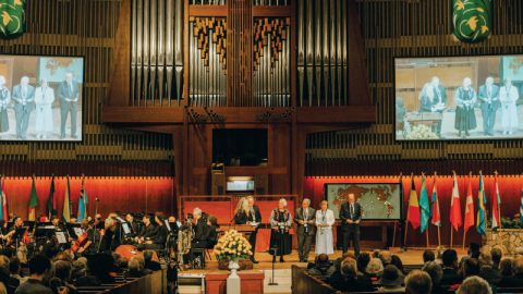 His afternoon inauguration included songs from three accomplished PUC alumni sopranos: Marnie Breckenridge (’93), Deborah Morel Tonella (’77), and Kathryn Hopgood Sculatti (’04).