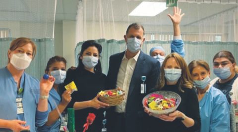 Sidany Barclay, chaplain at Adventist Health Portland, delivers donuts and a card from the Family Birth Center team to the ICU team, which was having a particularly difficult time. Sidany started this gift-giving initiative and facilitates all the details to help boost staff morale. It’s a win-win-win: The unit doing the giving feels good about making a difference for another team, the unit receiving the gift feels loved and supported, and the Spiritual Care team knows that hospital staff are being cared for.